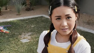 Tiny tits Asian teen gets 1st white cock and can't stop moaning