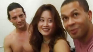 Sexy ass Asian babe sucking two hard dicks